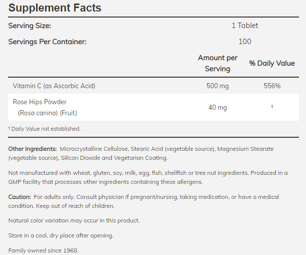 Към формулата са добавени шипки, които също са отличен източник на Витамин C, това води до синергични свойства на продукта на NOW.