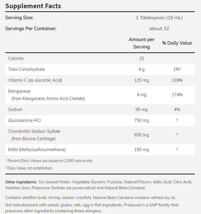 Glucosamine & Chondroitin with MSM е формула за стави и хрущяли в течна форма