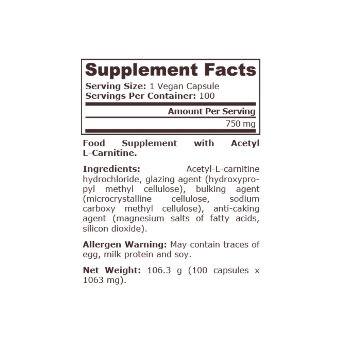Pure Nutrition - ACETYL L-CARNITINE 750 mg - 100 vegan capsules