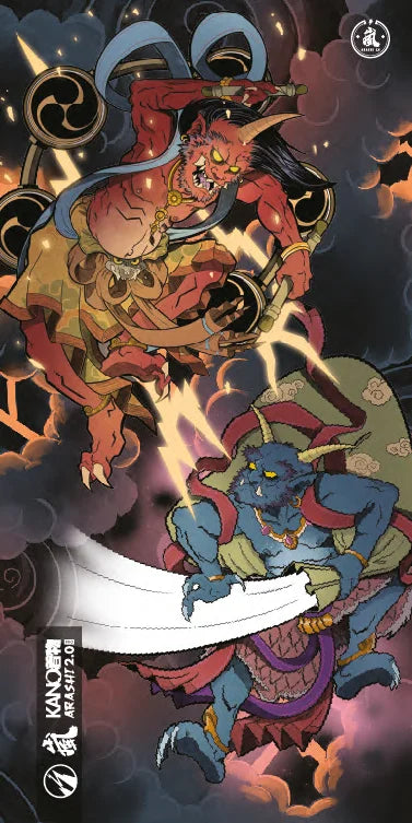 Араши означава буря на японски, а изобразените в него ОНИ са Райджин, богът на гръмотевицата, и Фуджин, богът на вятъра и гръмотевицата.