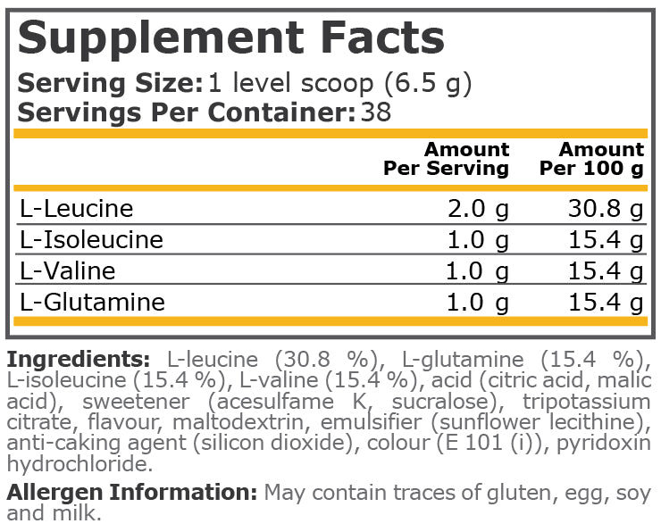 Верижно-разклонените аминокиселини са незаменими за тялото, защото то не може да ги произвежда самостоятелно, а трябва да се набавят от храна и добавки. BCAA Blastсъдържа във формулата си и добавен глутамин, важна аминокиселина която действа синергистично с верижно-разклонените аминокиселини и подобрява възстановяването и растежа на мускулните влакна.